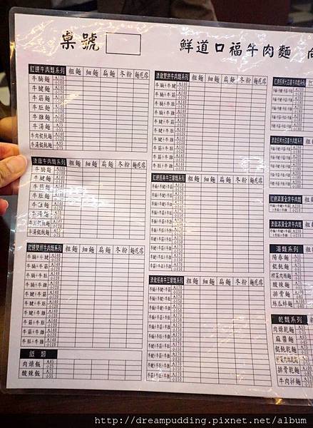 種類分太多太多了,主要以牛肉麵為主,湯頭及內容物可以有很多選擇,牛肉也分很多部位選擇,還有粗麵、細麵、麵疙瘩可以挑選,整個就是很客製化。