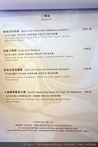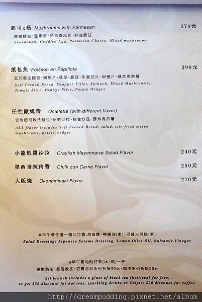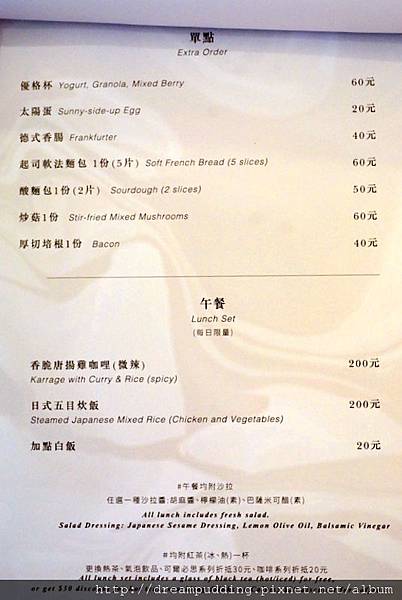 主要走早午餐系列,餐點內容都註明的很詳細。