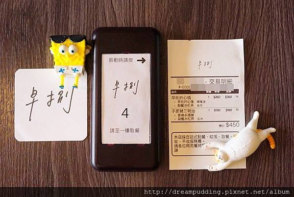 採自助點餐,點完餐之後會拿到一個震動通知器,一震動就可以到一樓取餐囉
