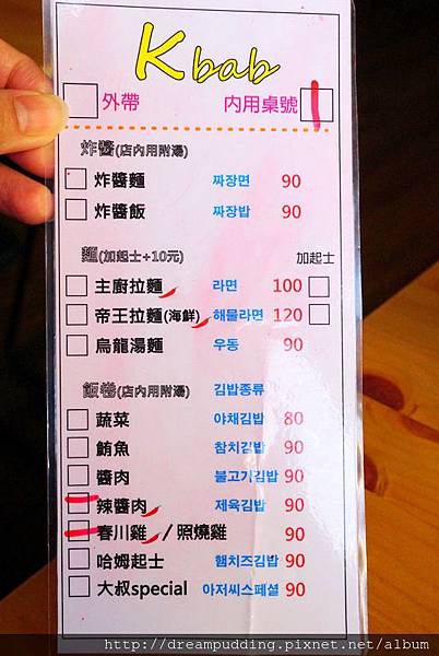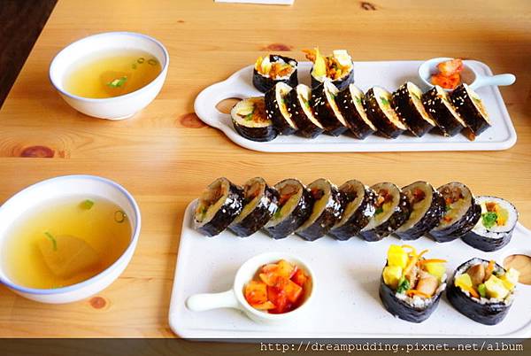 主打韓式飯卷,飯卷跟炸醬系列內用還有附湯。