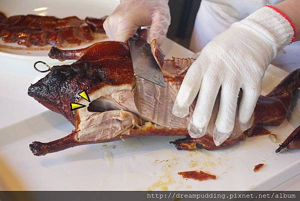 鴨的油脂十分豐厚,有部分的鴨肉油脂明顯,有部分的則油脂適中,皮薄帶點微脆,是比較肥潤的鴨。