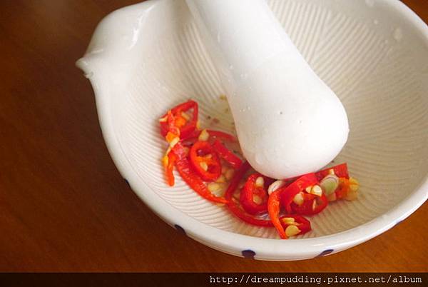 每個人都會有一個小缽,有生辣椒,可以加上桌上的調味汁,有些微酸,沾取食物吃,會很有越南風情。