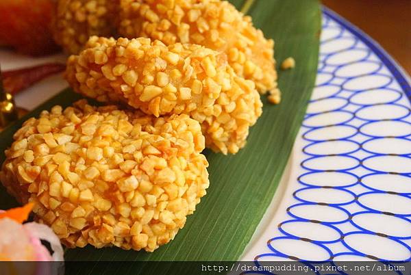 外皮裹滿了堅果,吃起來很有口感,裡面是Q彈卻帶點緊緻的熱燙口感,好吃!