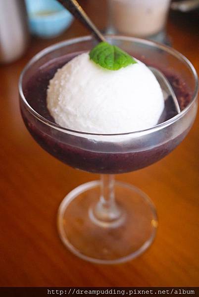 椰子雪酪佐紅豆紫米,椰子口味的冰淇淋很是濃郁,口感潤澤,紫米香濃,兩者很搭。