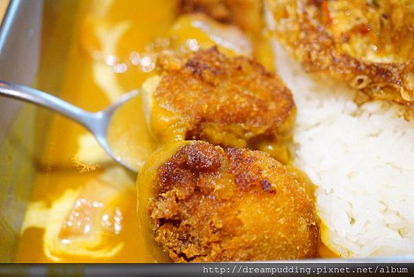 咖哩醬溫潤帶點淡淡的溫柔,不是那種很嗆的咖哩,平易近人好入口。