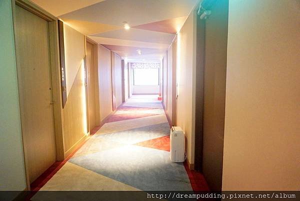 放好行李就出門玩樂去啦。走廊的地毯超繽紛的。