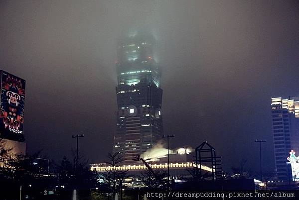 這天到台北市府前面看光雕展,有點霧,101變51了。