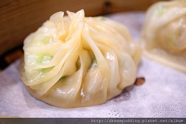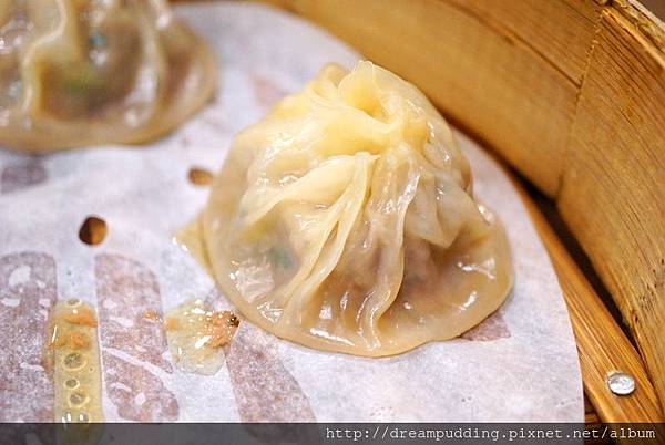 鮮瓜湯包放了一塊絲瓜在裡面,一咬到會有水嫩汁液跑出來。