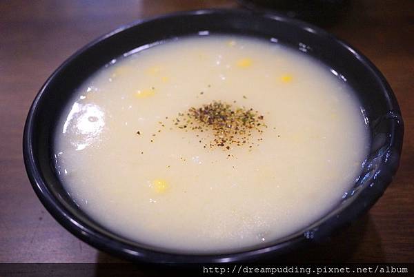 帶有濃稠度,就像我們去吃牛排館會喝到的玉米濃湯,蠻大一碗。