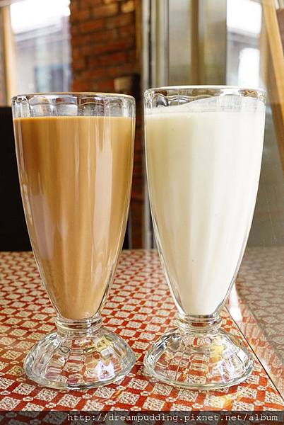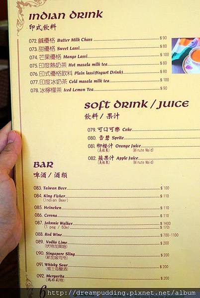 奶茶色的是冰茶,也就是印度香料奶茶,香料味穿梭其中,甜度恰好,嚐起來順口不黏膩;白色的是印式優格飲料,酸度微微,喝起來細緻不濃稠,也很不錯。