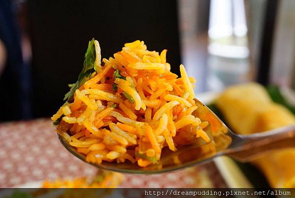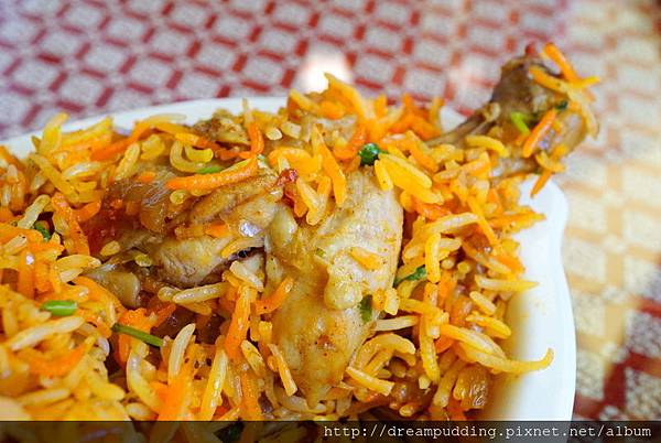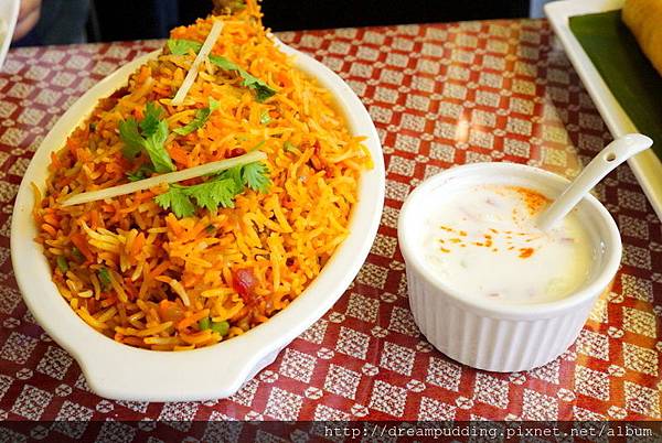 印式美味雞肉特味飯,搭配的是優格醬。