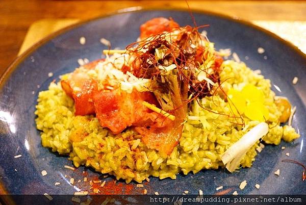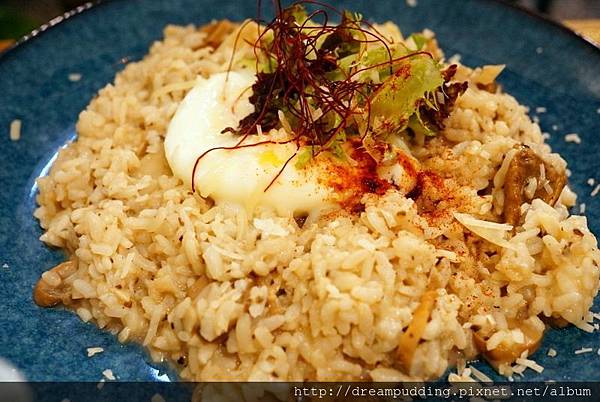 燉飯很入味,滑嫩的溫泉蛋讓燉飯吃起來多了股潤澤,份量也多,米飯偏軟。
