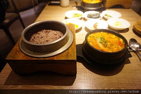 整鍋料理會有一個豆腐煲跟一個石鍋紫米飯。