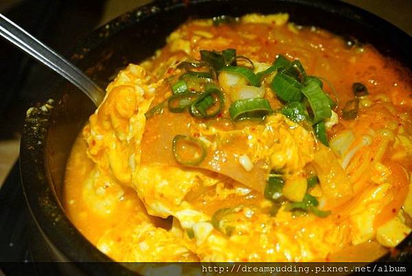 泡菜牛肉豆腐煲,泡菜很多,辣度十足,料也一樣很多,湯頭濃郁帶辣。