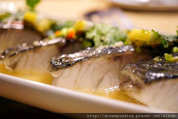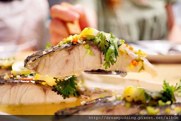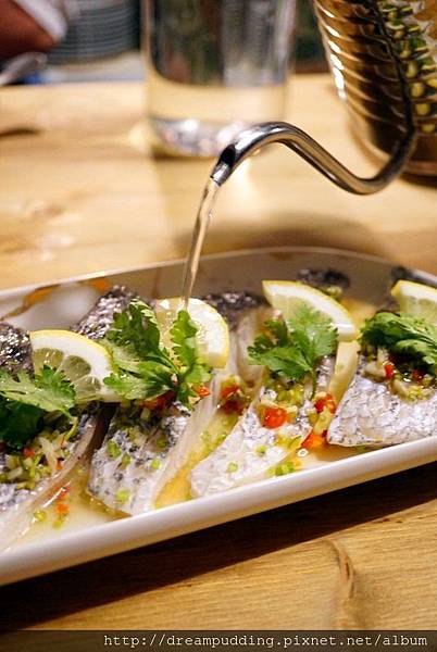 淋上高湯後的魚肉看起來真是鮮豔欲滴。
