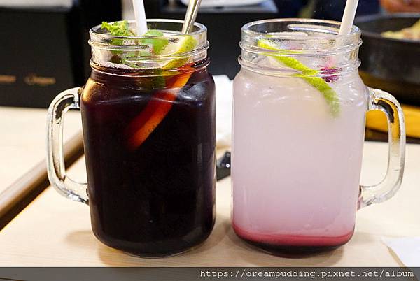 莓顏菓茶&葡萄可爾必思蘇打。