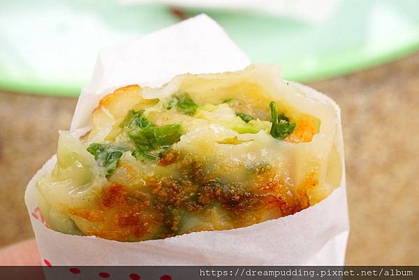 最不能錯過這個蔥蝦餅,餡餅裡面包著新鮮彈Q的蝦,熱燙又有肉汁,一整個很美味。
