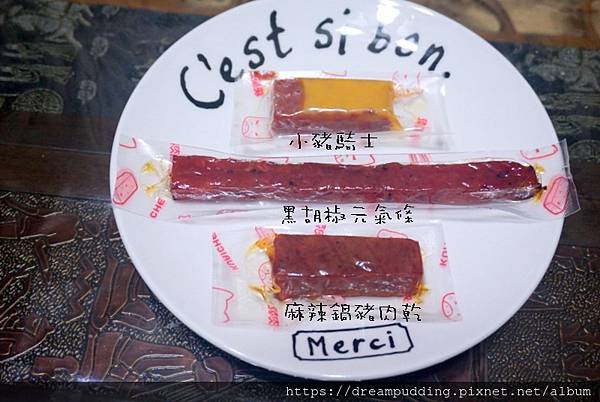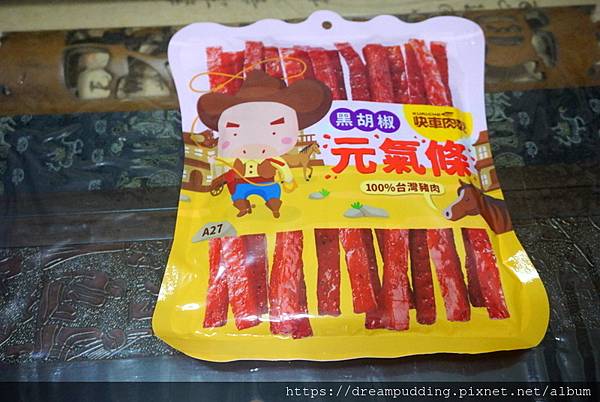 因為公司現貨只剩下黑胡椒元氣條跟麻辣鍋豬肉乾,所以只買這兩種口味,小豬騎士是活動送的^^