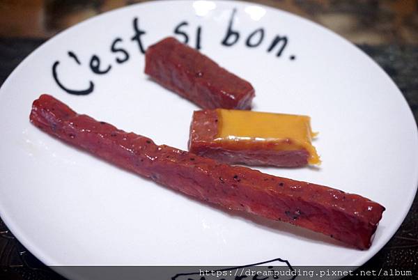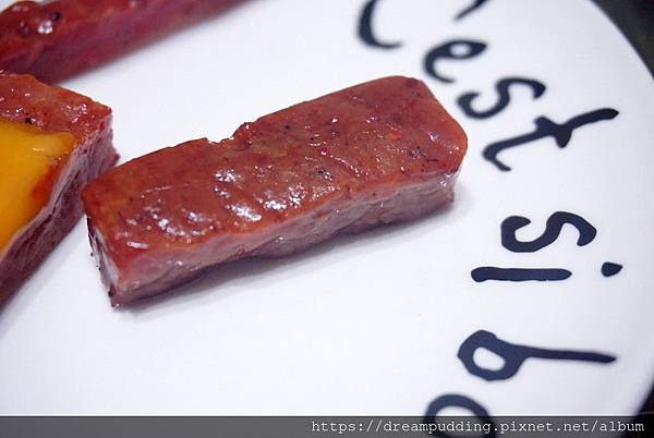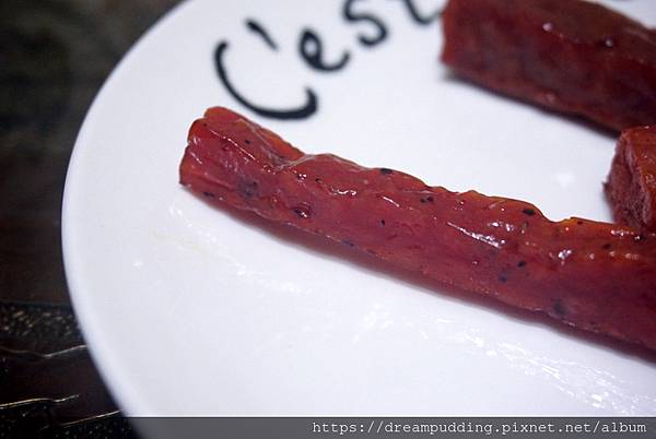 黑胡椒味明顯,還有些微肉汁,口感微微濕潤不會乾。