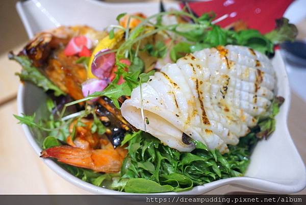 炭烤海鮮沙拉。