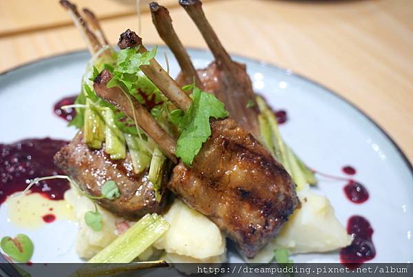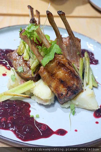 羊肉很嫩,薯泥軟綿,跟微酸甜的莓果醬好搭。