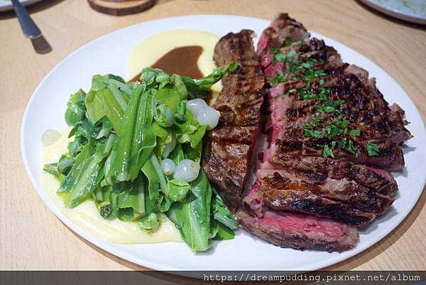 火烤美國Prime帶骨肋眼配舅舅種的原生種山蘇。