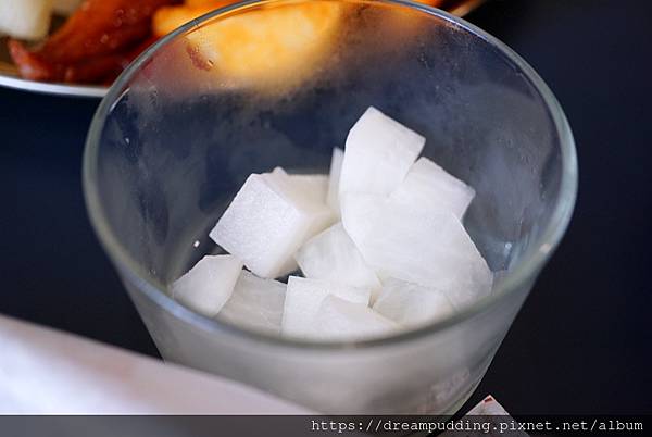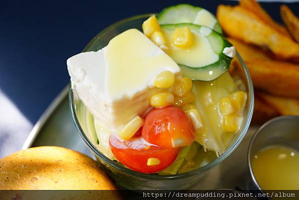 沙拉裡面還有一塊小豆腐,搭上酸甜的沙拉醬,新鮮開胃。