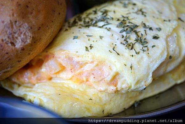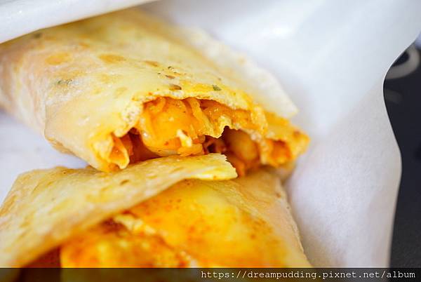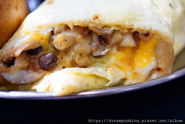 蒜香野菇起司蛋捲很大一份,蒜香味很濃,菇很脆,還有濃郁的起司縣,口感豐富又有飽足感。