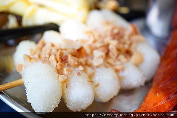花生煉乳炸年糕串,外酥內軟Q,香甜的很好吃。