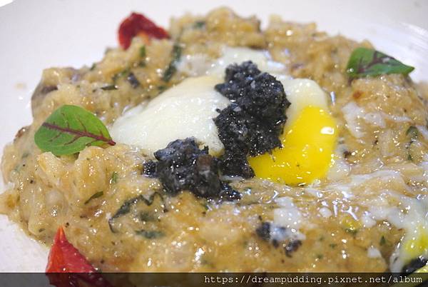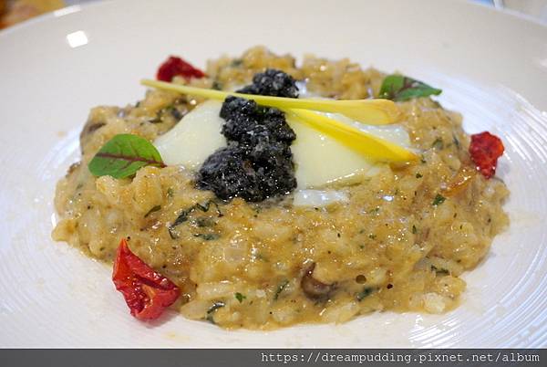 松露野菇帕瑪森附溫泉蛋燉飯,NT 350元。