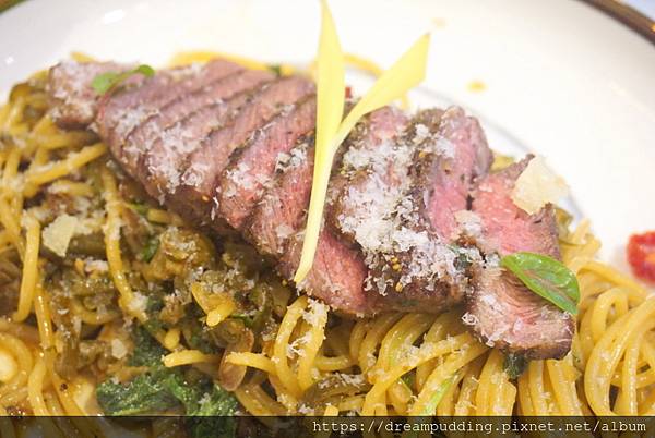 牛肉給的不少,嫩度嚼勁適中,義大利麵彈牙,口感香濃帶點細微的辣,好吃!