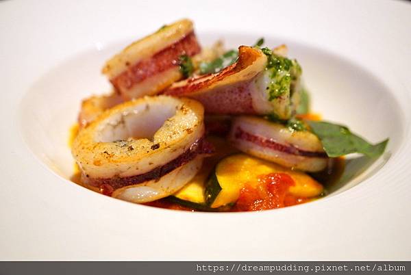 茄汁中卷,中卷超Q彈的,還有新鮮櫛瓜。