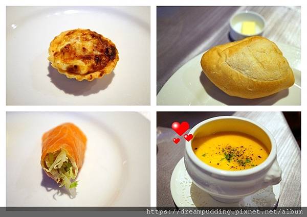 起司塔熱燙濃郁的好迷人,自製新鮮燻鮭魚卷也是軟嫩的新鮮無比,麵包烤得熱呼呼,外酥內柔軟配上絲滑奶油好好吃,那個南瓜濃湯香甜濃滑,雖然知道喝完會減弱戰鬥力,但我還是喝光光>////<