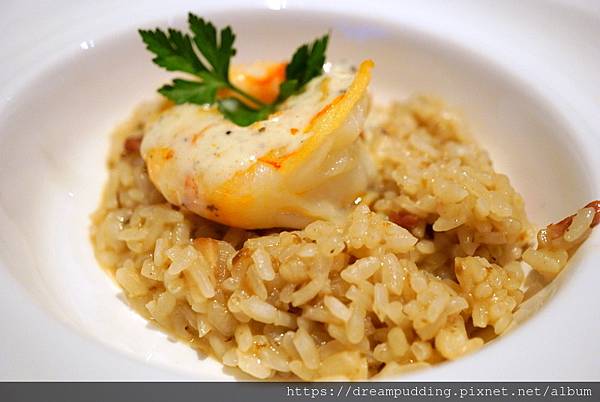 明蝦大汁又緊緻Q彈,燉飯軟硬度適中,很是入味。