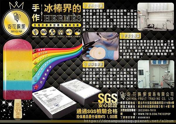 官網有詳細介紹,奇花異果的冰棒是有通過SGS認證也有投保產品責任險的,全程在無塵室製作,讓消費者吃的安心也放心。