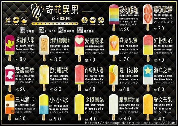 MENU上跟冰棒包裝都有標示口味跟內容物,所以大家一起吃的時候,可以挑選口味吃^^