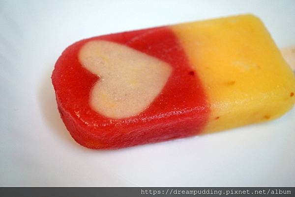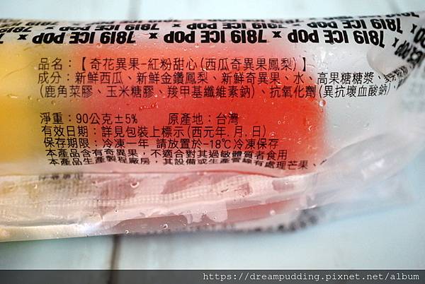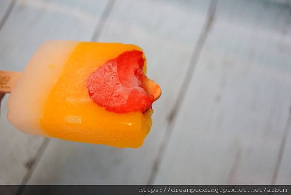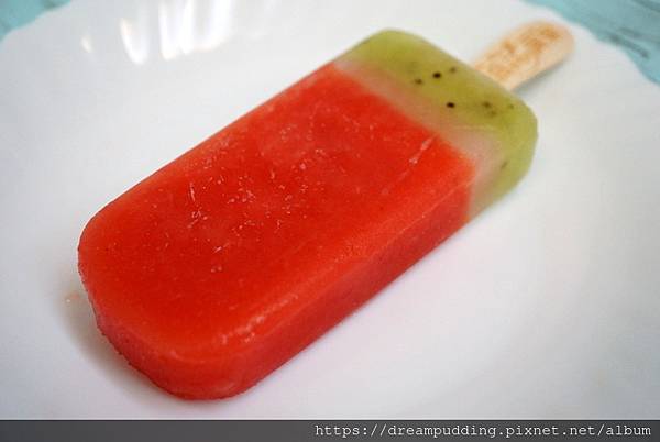 漸層色的紅粉甜心,則是用了西瓜奇異果跟鳳梨,一支冰棒,三種口味享受。