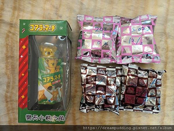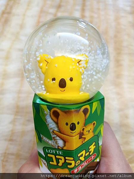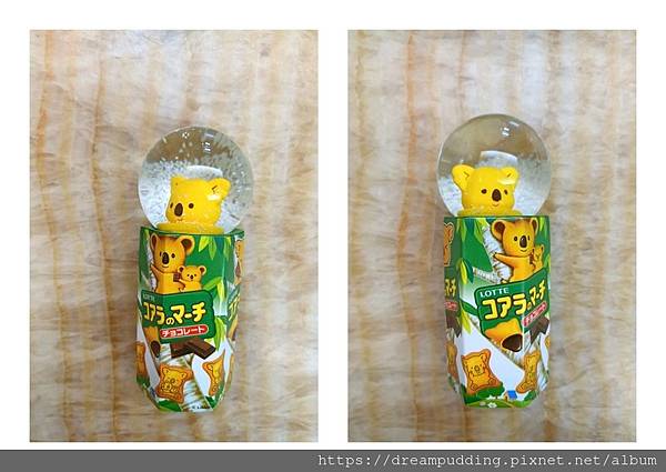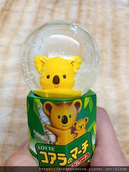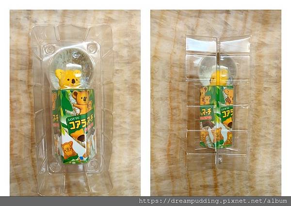 打開盒子裡面有一個水晶球跟4包小餅乾,分別是巧克力跟草莓口味,由於外包裝我已經回收了,所以就在餅乾包裝上面寫上到期日。