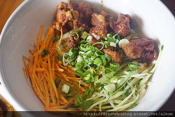 雞肉炸過,所以比較乾一些,但也是越嚼越香。