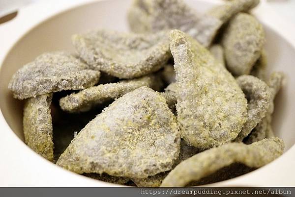 調味粉都裹好裹滿,一口大小涮嘴好入口,口感鮮脆濃郁帶點鮮美,還有羅勒青醬的清新穿梭其中,真的是很有層次的海味耶。