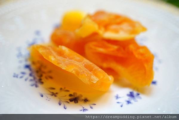 口感軟中帶Q,橘子獨有的酸甘及細微的甜彼此交織穿梭,越嚼越喜歡,很耐吃的一款果乾。