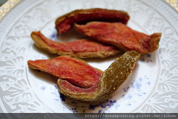 芭樂乾是微糖的,配上芭樂獨有的微苦澀,這甜度中和的剛剛好耶!雖說是果乾,但是吃起來不會甜膩,挺清爽的,而且很涮嘴,會忍不住一口接一口。