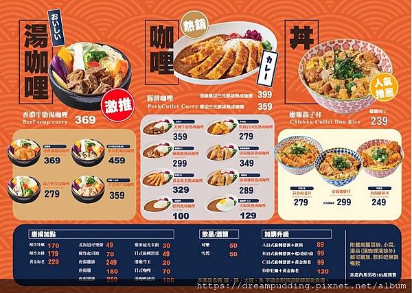 餐點選擇有湯咖哩、咖哩跟丼飯。