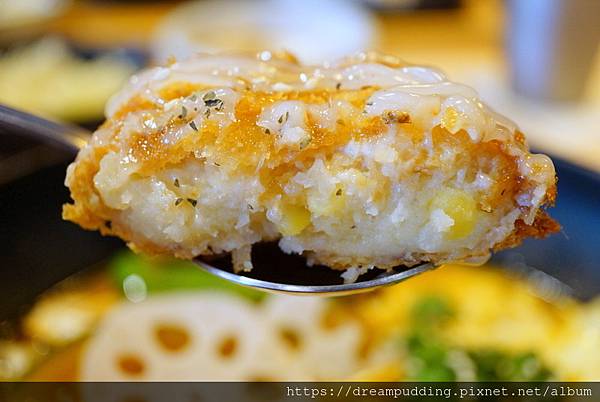 外皮炸的微酥,麵衣很薄,馬鈴薯膨鬆軟綿,搭配甜潤的美乃滋,好吃極了。