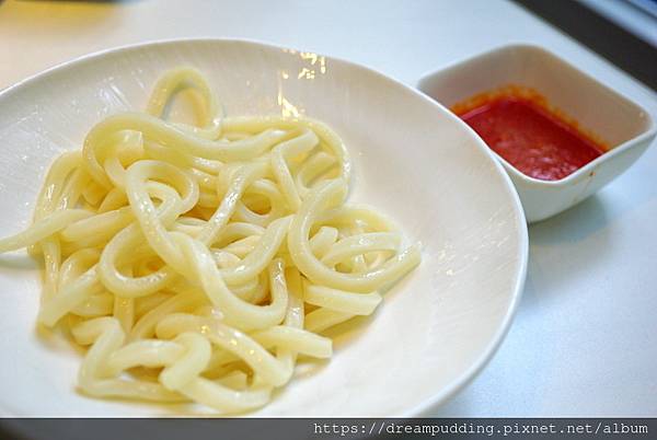 米飯類我們選擇烏龍麵,口感Q彈十分好吃,辣醬很辣,嗜小辣的沾一點點即可。