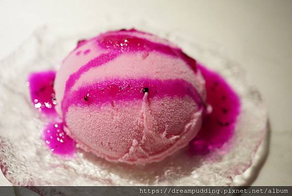 這天甜點是火龍果口味冰淇淋,很好吃耶!甜度剛好,吃完也不膩口,完美的結尾。