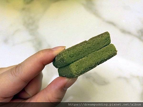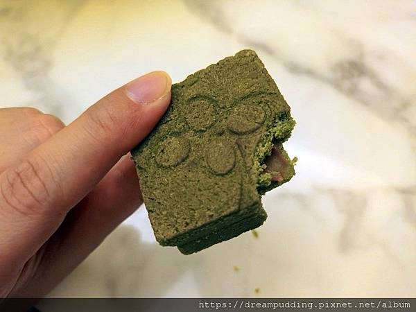 外層餅乾口感酥脆,抹茶味明顯,帶著隱隱微苦茶香。