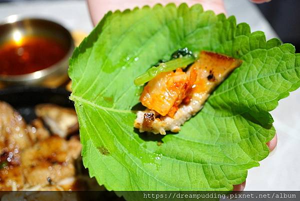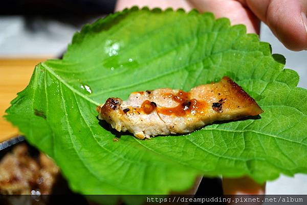 他的芝麻葉不苦耶,配上五花肉解膩好吃。