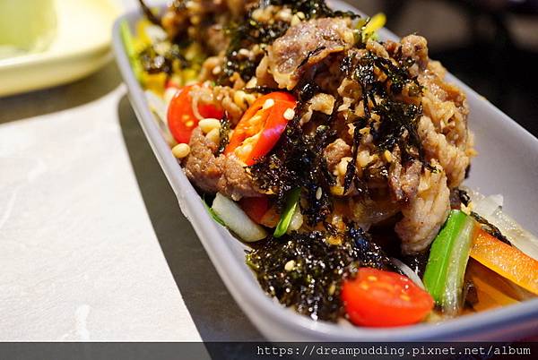 這個我還挺喜歡的,是我愛的五花牛肉,配上生菜跟酸甜醬汁很是清爽解膩。