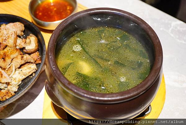 海膽海鮮海帶湯是出示某位正妹部落客的用餐文章QR CODE兌換的,出乎意料的是我全場最喜歡的一道,鮮甜潤澤,好喝暖胃。